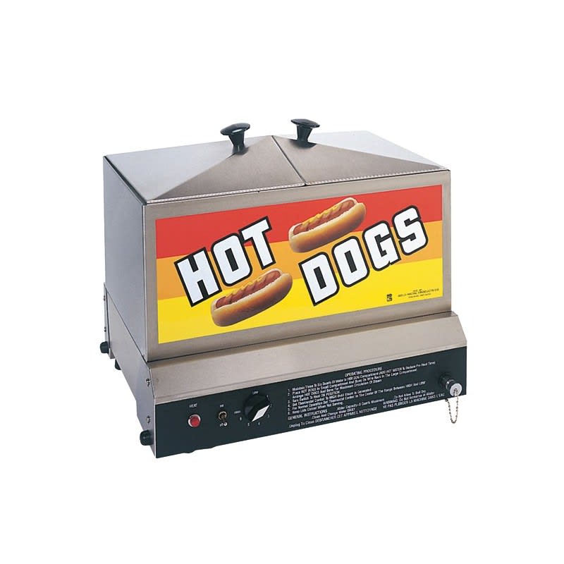 This stainless steel brute is built to go the distance when it comes to durability. With no painted parts and a full stainless cabinet and lid, the Steamin' Demon® #8007 is a convenient steamer that can hold up to 80 regular dogs and 40 buns. This hot dog steamer steams hot dogs and buns conveniently all in one unit. This is a perfect addition to parks or arenas!